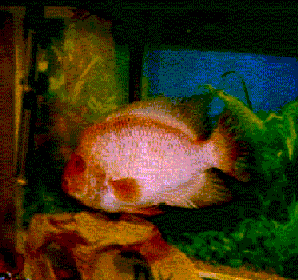 He is a Red Devil and not very nice. He lives on small Goldfish and Bloodworms. | ||||||||||||||||